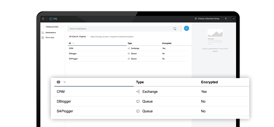 - MQ is built on Anypoint Platform, meaning that queues and message exchanges offer the same management capabilities as the platform itself, from environments and business groups for multi-tenant role-based access control to client access management.